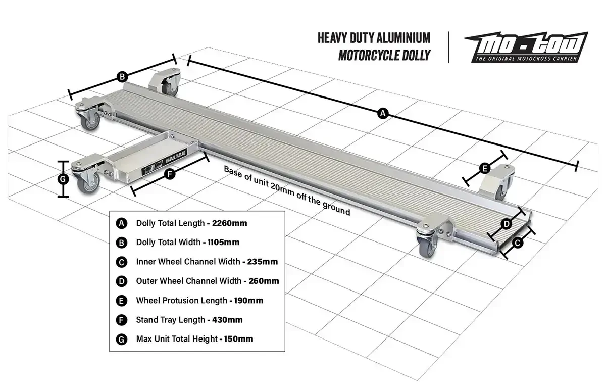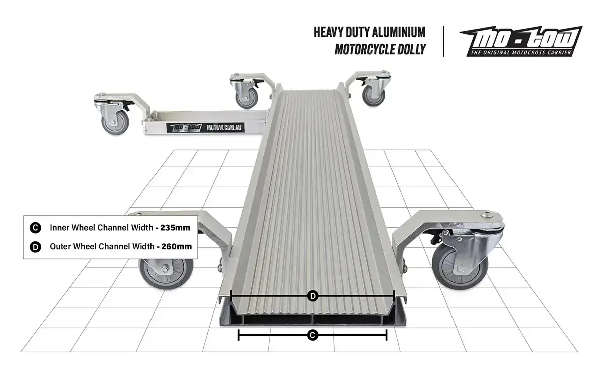 This dolly ensures you are easily able to easily manoeuvre your motorcycle around the garage or workshop