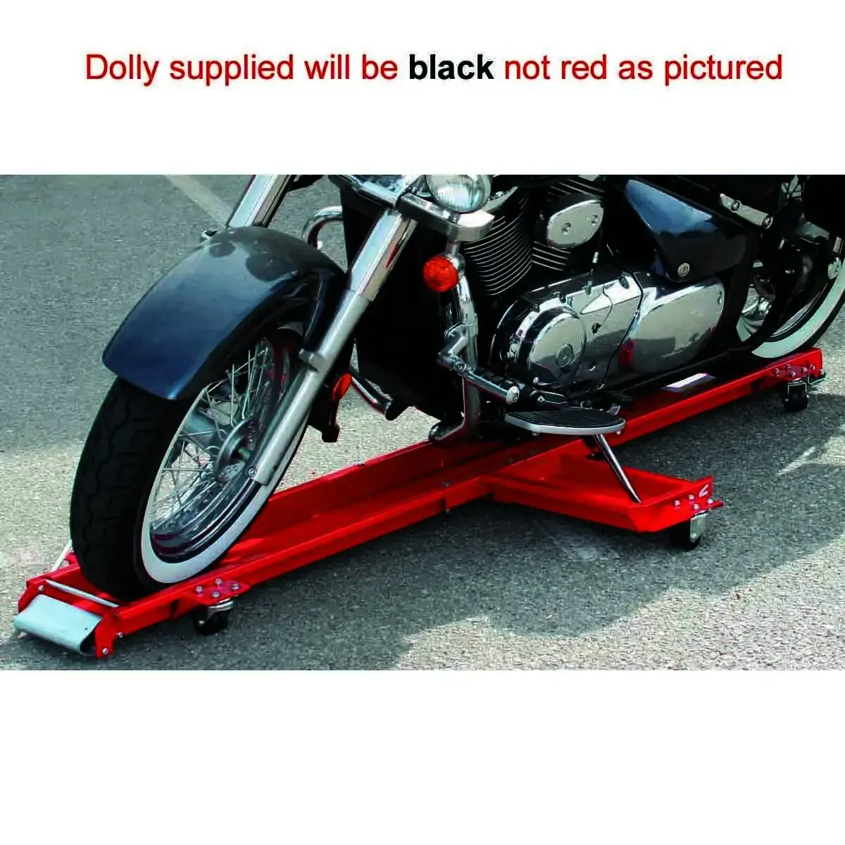 This motorcycle dolly holds a single motorcycle with a side stand weighing up to 566kg.